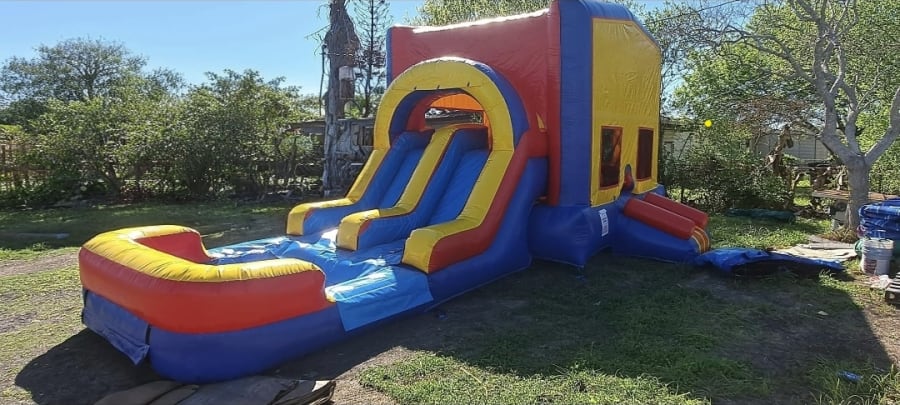 Bring high-energy fun to any gathering with the Modular Dual Lane Combo. This versatile moon jump combines twin slides, and an interior basketball hoop. Use it dry for backyard parties and school events or add water for a splash-ready attraction. Perfect for Birthday parties, fundraisers, school events, backyard parties, and corporate events. Moon jump rentals Modular Dual Lane Combo in Annaville, Flour Bluff, Ingleside, Aransas Pass, Corpus Christi, Gregory, Portland, Alice, Sinton, Sandia, Mathis.